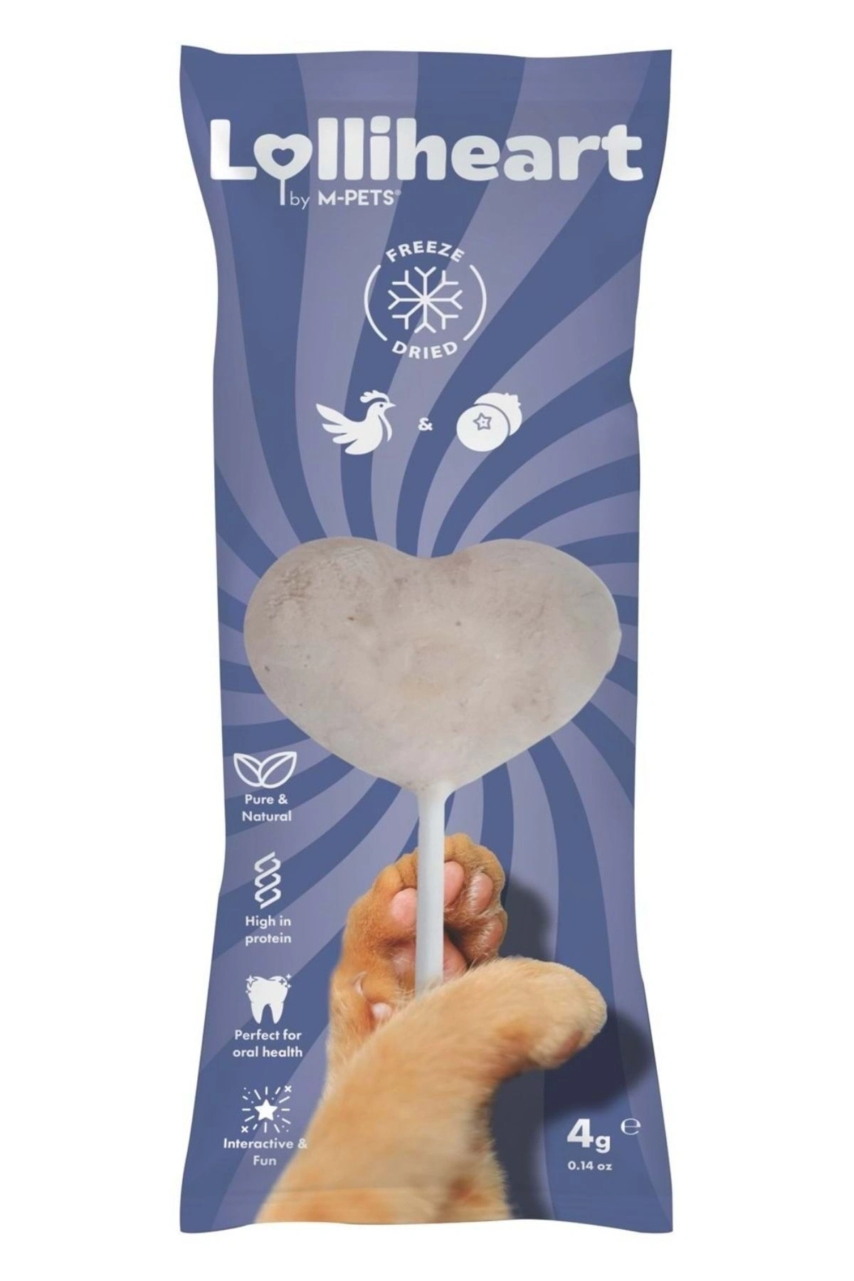 M-Pets Lolliheart Tavuklu ve Yaban Mersinli Kedi Ödülü, kediniz için doğal lezzeti ve yüksek besin değerlerini korumak amacıyla dondurularak kurutulmuş (freeze-dried), kalp şeklinde tasarlanmış sağlıklı bir ödül mamasıdır. Dondurarak kurutma teknolojisi sayesinde içeriğindeki gerçek tavuk etinin protein kalitesini ve yaban mersininin vitamin değerlerini %100 doğal haliyle saklar. Gerçek tavuk ve süper besin yaban mersininin bu benzersiz kombinasyonu, kediniz için hem bağışıklık destekleyici hem de oldukça iştah açıcı bir kedi ödül maması deneyimi sunar.