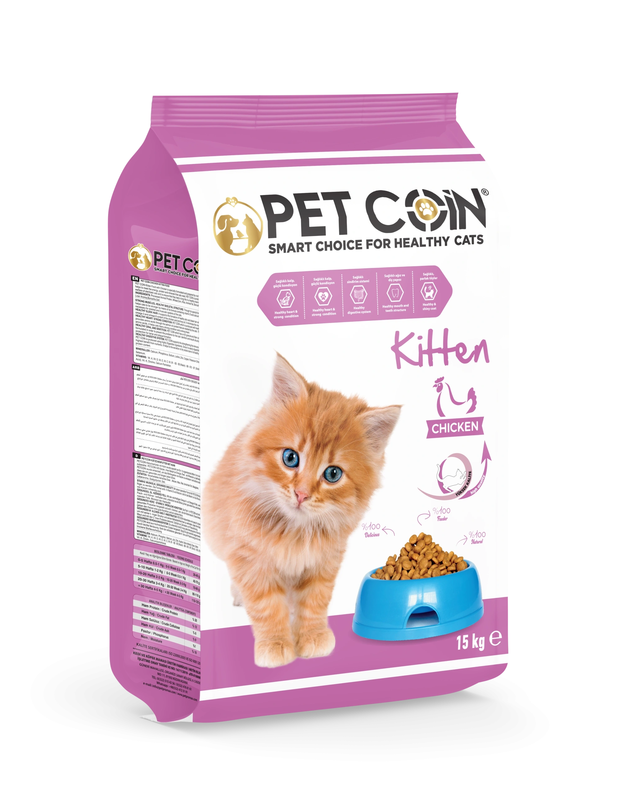 İşlenmiş hayvansal protein (%36 Tavuk),bitkisel protein (%9),buğday, mısır, pirinç, bezelye, hayvansal yağ (%9 Tavuk),mısır gluteni, bonkalit, bitkisel lifler, doğal aroma vericiler, yucca 60mg/kg, ciğer aroması, taurine 1000 mg/kg, selenium 0.1 mg/kg.
