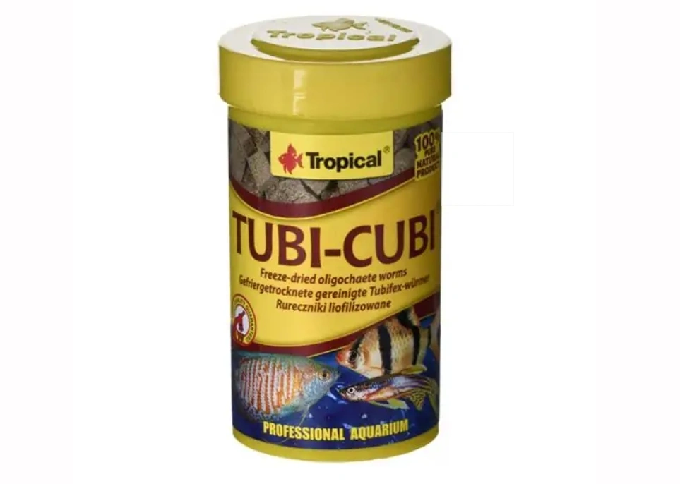 Tubi-Cubi, dondurularak kurutulan tubifex ( Tubifex tubifex ) ile elde edilen, omnivor ve etobur balıklara özel, topak şeklinde doğal bir besindir.