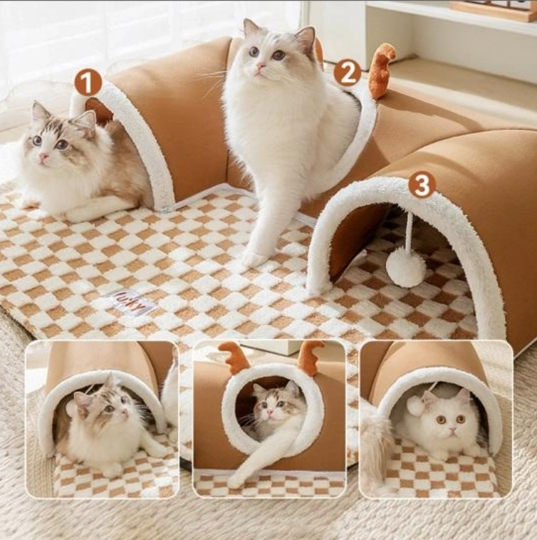 Bu kedi tüneli yatağı, evcil hayvanlarınız için hem konforlu bir uyku alanı hem de eğlenceli bir oyun tüneli sunan çok fonksiyonlu bir evcil hayvan ürünüdür.
